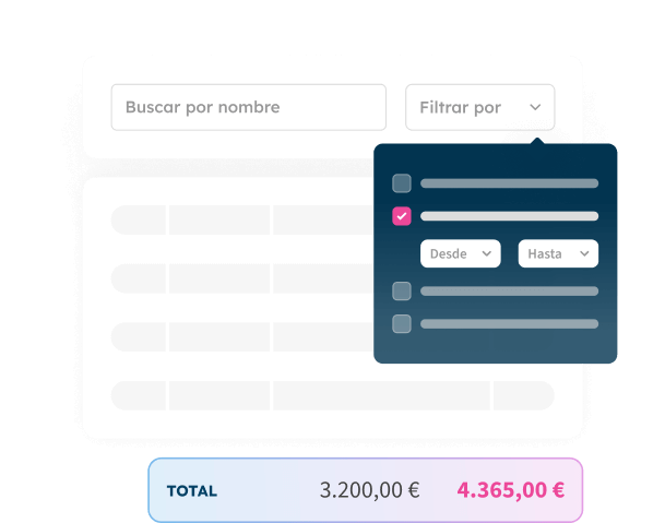 Te permite buscar, filtrar y los gastos por diferentes criterios al instante. Podrás: